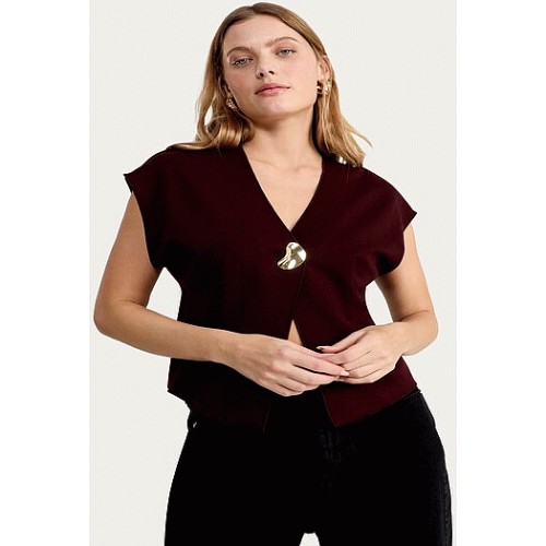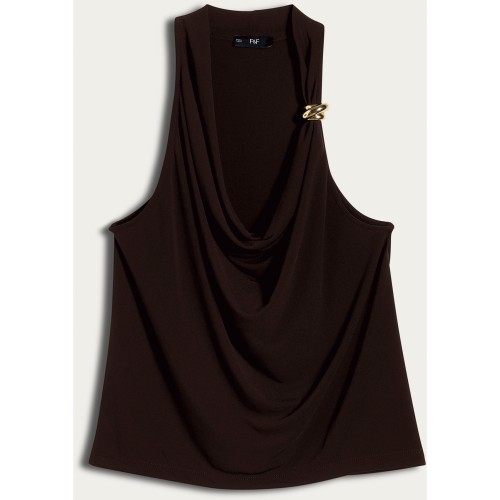 Cowl Neck Metal Accent Sleeveless Top in Chocolate