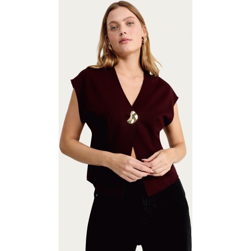 Cowl Neck Metal Accent Sleeveless Top in Chocolate