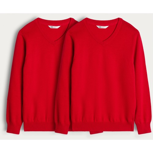 F&F School 2-Pack Pure Cotton V-Neck Jumpers in Red