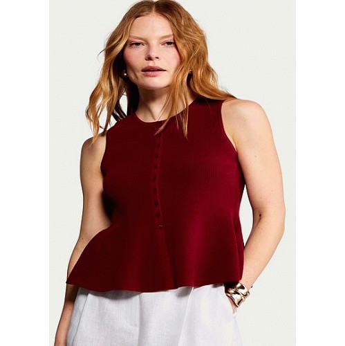 Button Front Peplum Hem Waistcoat in Red