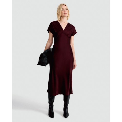 V Neck Ruffle Front Strappy Midi Dress in Burgundy