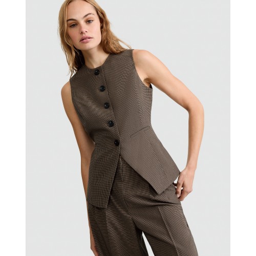 Check Buttoned Co-ord Waistcoat in Brown