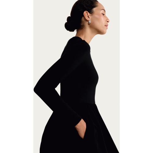 Long Sleeved Midi Dress in Black