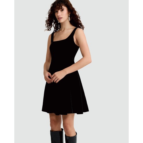 Crinkle Textured Gold Buckle Sleeveless Dress in Black