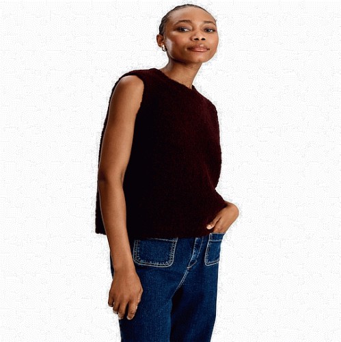 Textured Knitted Sleeveless Top with Wool in Burgundy