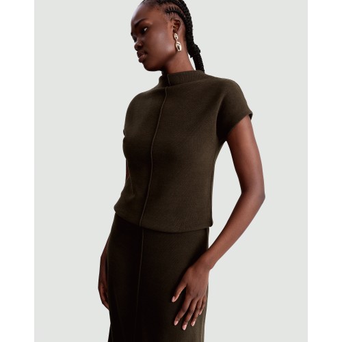 Velvet Textured Short Sleeved Co-ord Top in Brown