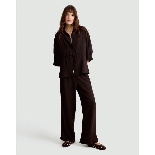 Velvet Textured Wide Leg Co-Ord Trousers in Brown