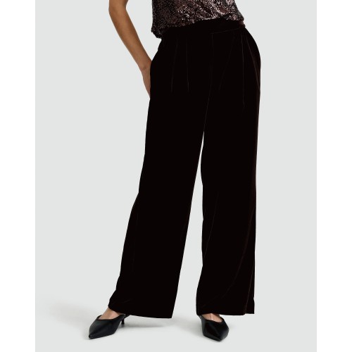 Velvet Wide Leg Trousers in Brown