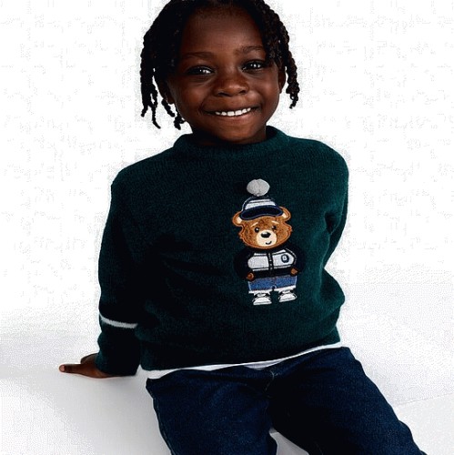 F&F Boys Textured Knit Bear Print Jumper in Green