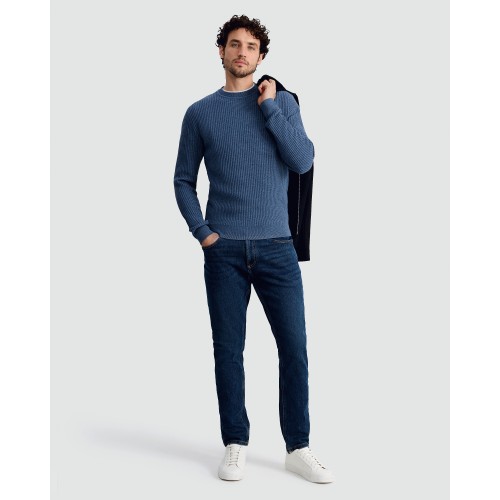 Waffle Knit Crew Neck Jumper with Wool in Blue