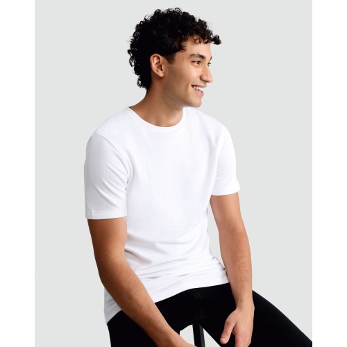 WARMPLUS Medium Warmth Ribbed Thermal Short Sleeved T-Shirt in White