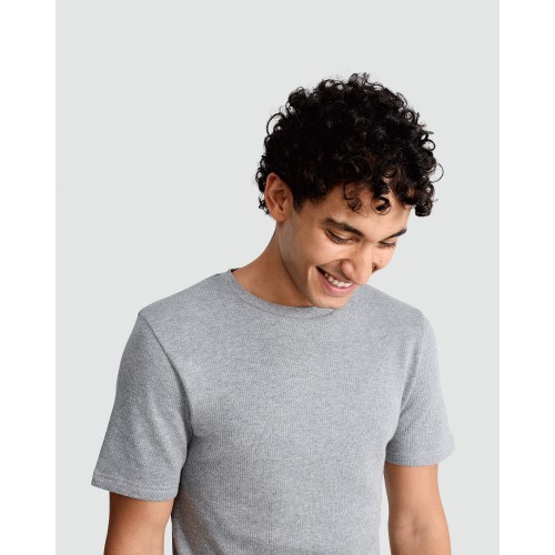 WARMPLUS Medium Warmth Cotton Blend Ribbed Thermal T-Shirt in Grey
