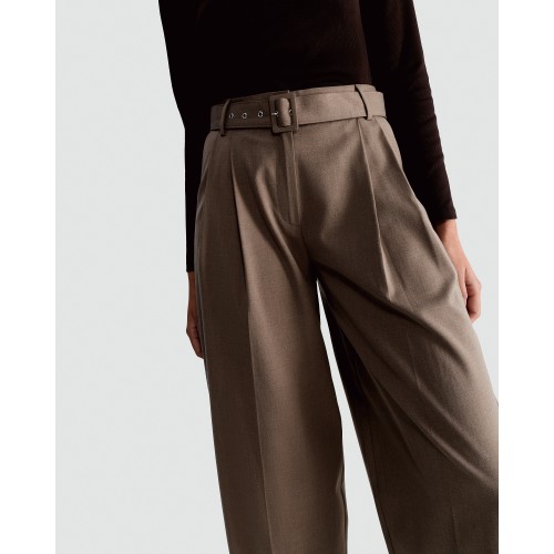 Pleated Belted Barrel Leg Trousers in Brown