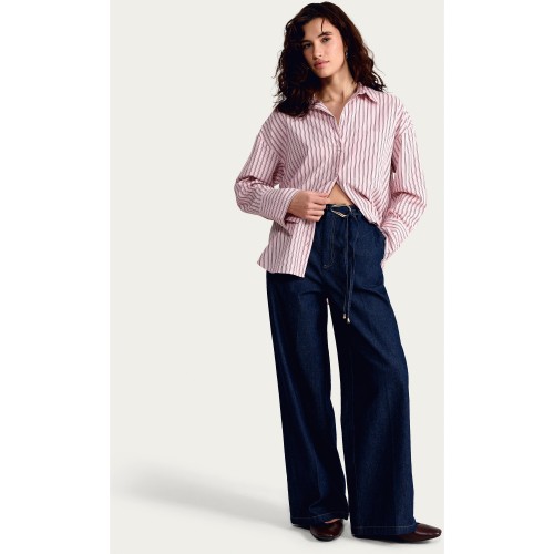 Curve White Stripe Belted Wide Leg Linen Trousers