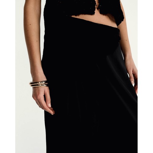 Satin Lace Scarf Detail Wide Leg Trousers in Black