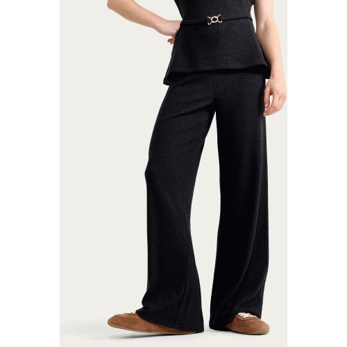 Herringbone Print Wide Leg Co-ord Trousers in Grey