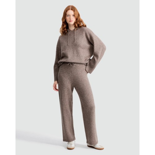 Textured Wide Leg Drawstring Co-ord Joggers with Wool in Mink