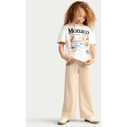 F&F Girls Crinkle Textured Wide Leg Drawstring Trousers in Neutral