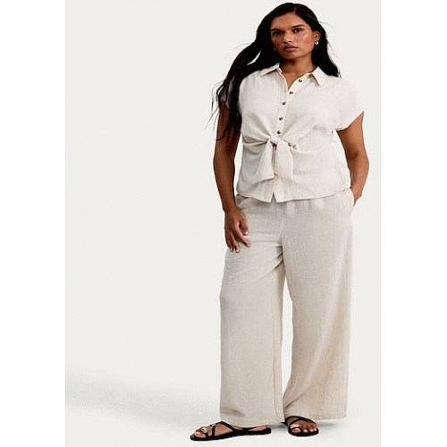 Textured Wide Leg Drawstring Co-ord Trousers in Neutral