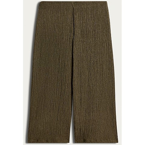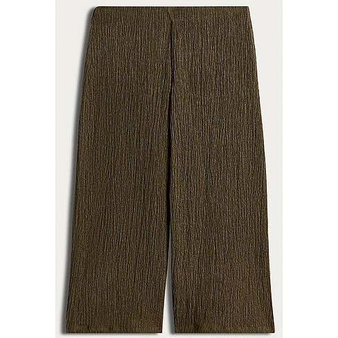 F&F Girls Crinkle Textured Wide Leg Drawstring Trousers in Neutral