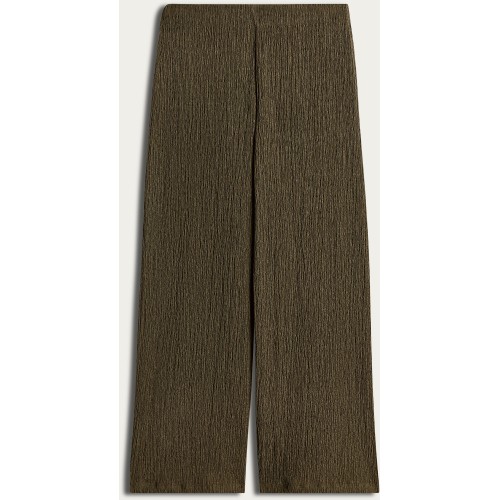 Textured Wide Leg Co-ord Trousers in Khaki