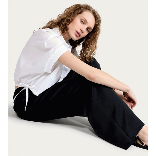 Pure Lyocell Drawstring Wide Leg Trousers in Black
