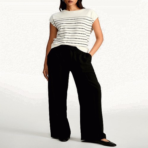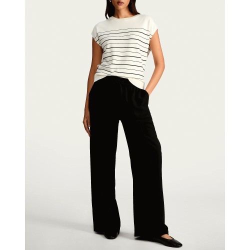 F&F Girls Crinkle Textured Wide Leg Drawstring Trousers in Black