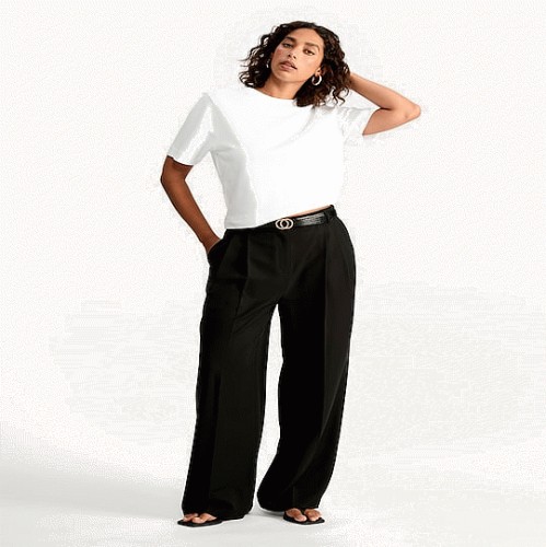 Curve White Stripe Belted Wide Leg Linen Trousers