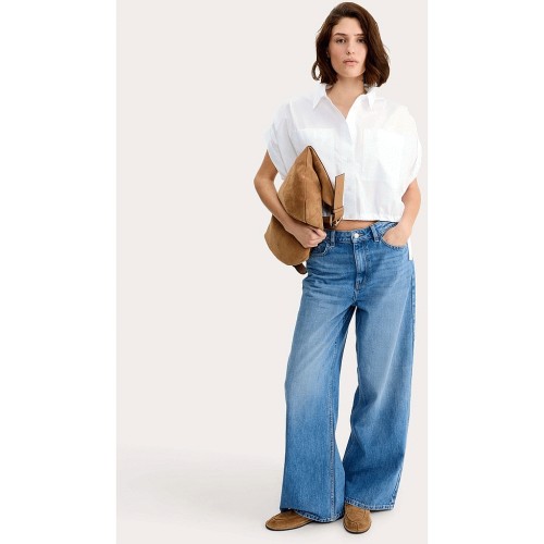 Pure Cotton High Rise Wide Leg Jeans in Blue