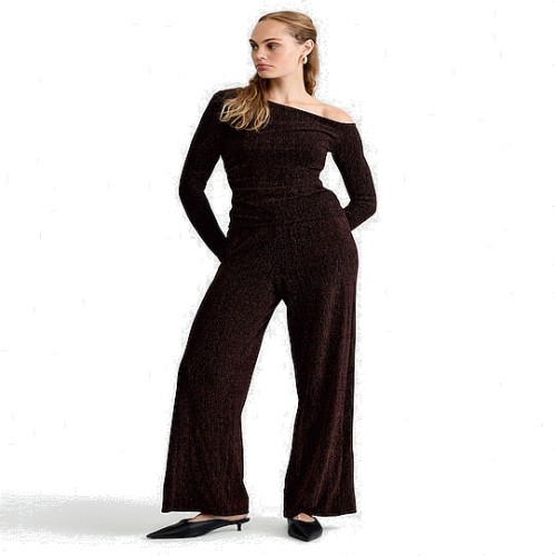Sparkle Wide Leg Co-ord Trousers in Brown