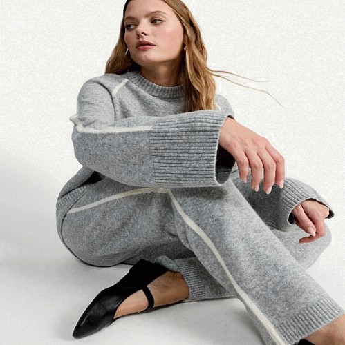 Knitted Side Stripe Wide Leg Co-ord Trousers in Grey