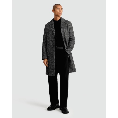 Wool Blend Fringed Scarf Formal Coat in Grey