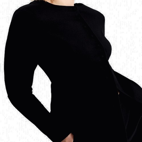 Button Front Long Sleeve Blouse in Black
