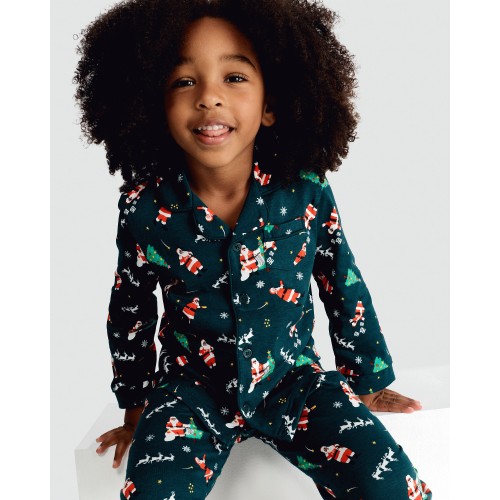 F&F x March Muses Pure Cotton Santa Print Pyjama Set in Green
