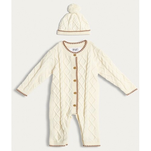F&F x Samantha Faiers 2-Piece Cable Knit Romper and Hat Set in Stone