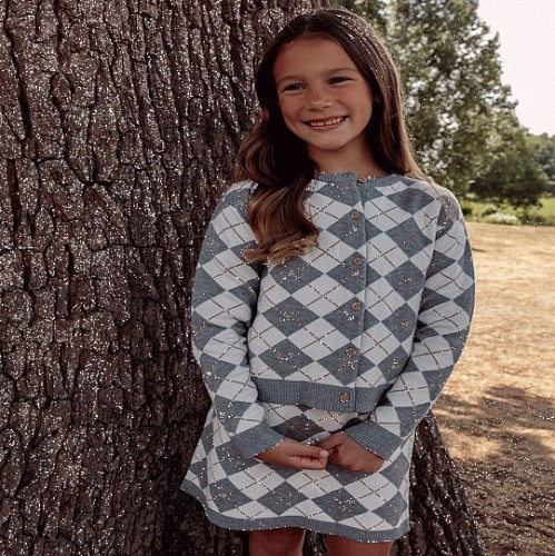 F&F x Samantha Faiers 2-Piece Argyle Cardigan and Skirt Set in Grey