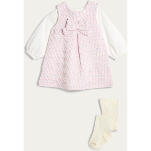 3-Piece Bow Dress Bodysuit and Tights in Pink