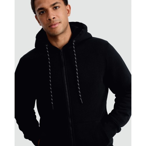 Cotton Rich Faux Fur Lined Zip Up Hoodie in Black