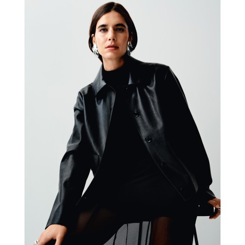 Faux Leather Button-Up Jacket in Black
