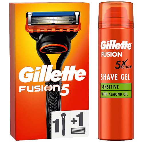 Fusion5 Razor For Men & Gillette Fusion Shave Gel With Almond Oil Bundle