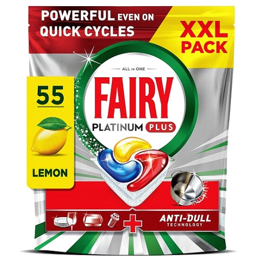 • Fairy Platinum Plus All in One dishwasher tablets deliver a clean like new