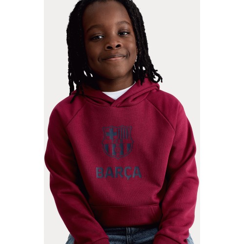 FC Barcelona Logo Cotton Rich Hoodie in Burgundy