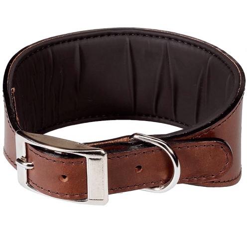 Bull Leather Padded Hound Dog Collar Brown Medium