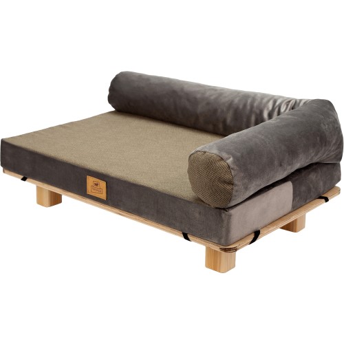 Hard Dog Bed With Sofa Cushion Lining Grey Small