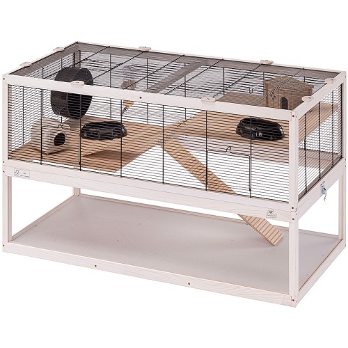 Accessories included: 2 non-slip perches, 1 drinking bottle, 1 food clip, 1 mirror-toy, assembly instructions