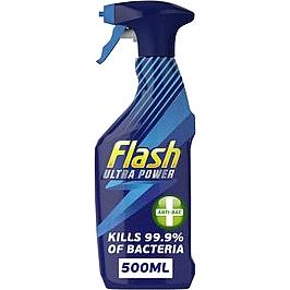 Flash Ultra Power Antibacterial Cleaning Spray cuts through up to 100% of dirt, grease and grime (tested on the most common surfaces and types of dirt, showing complete removal).