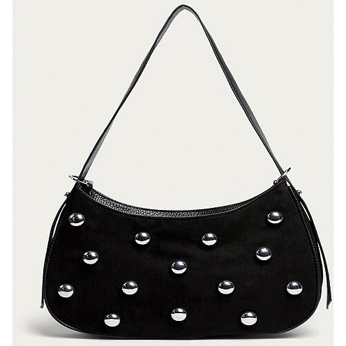 SACHA Faux Suede Studded Shoulder Bag in Black