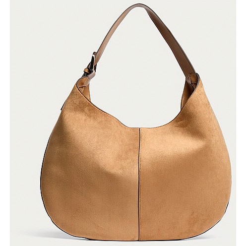 SACHA Faux Suede Medium Shoulder Bag in Tan