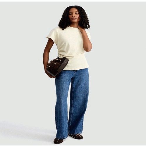 Pure Cotton Ruched Side Short Sleeved T-Shirt in Yellow