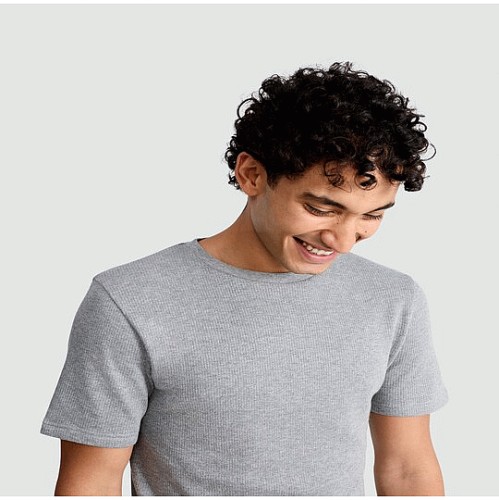 Cotton Blend Ribbed Thermal Short Sleeved T-Shirt in Grey